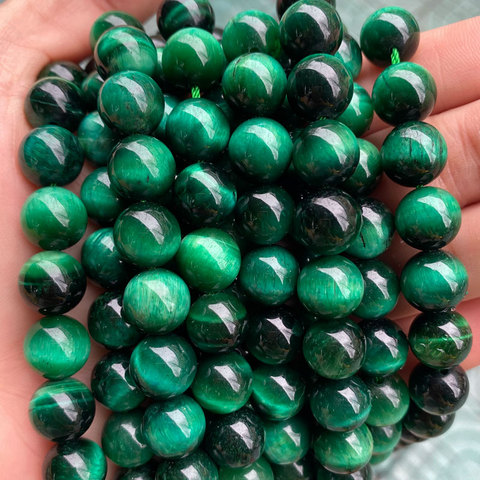 Wholesale Gemstone Beads 8mm 10mm Round Natural Green Tiger Eye Stone Loose Beads for Jewelry Making DIY