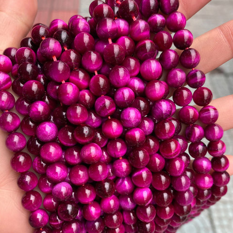 7A Grade Natural 8mm Gemstone Beads Round Dyed Fuchsia Tiger Eye Stone Loose Beads DIY for Jewelry Making