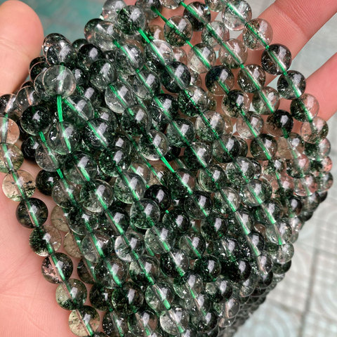 4 6 8 10 12mm Green Ghost Quartz Crystal Round Loose Stone Beads for Jewelry Making DIY Bracelet