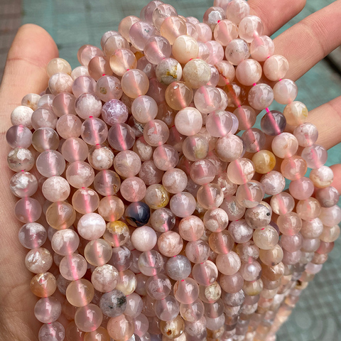 Natural Semi-Precious Round Smooth Cherry Blossom Agate Loose Beads for Jewelry Making